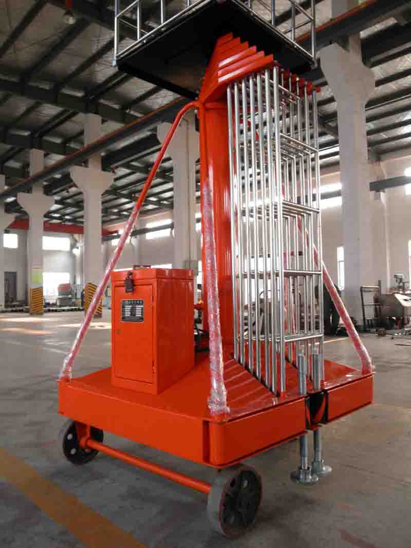 Mobile Telescopic Cylinder Platforms high strength high quality aluminum alloy material, it has beautiful shape, small volume, light weight, flexible operation, convenient. The advantages of steady lifting, safe and reliable. The appearance of the light, it can play the highest lifting ability in tiny space. Widely used in factories, hotels, restaurants, cinema, station, exhibition hall and other places, is to maintain machine, paint decoration, exchanging the lamps and lanterns, electrical appliances, such as cleaning and maintenance purposes best partners.